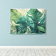 A lush canvas featuring oversized tropical leaves in shades of emerald green, set against a light cream background. This vibrant botanical artwork infuses spaces with freshness and a touch of nature.