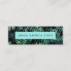 Elegant business cards in a unique paper-saving mini size have a chic tropical island vibe. Personalise the front with your name or business name on a background of vibrant green jungle botanical leaves, and add your full contact information to the back in modern white lettering on a contrasting bright aqua background. A unique and elegant choice for any occupation; example shown for event planners.