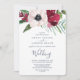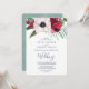 This tropical breeze wedding invitation card is perfect for an elegant spring or summer wedding. The floral design features red, burgundy, blush and white flowers on a bed of watercolor eucalyptus and tropical greenery with a relaxed Hawaiian feel.