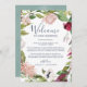 These tropical breeze welcome letter & itinerary cards are perfect for an elegant spring or summer wedding. The floral design features red, burgundy, blush pink and white flowers on a wreath of watercolor tropical greenery with a relaxed Hawaiian feel. The front of the card features a welcome letter and the back of the card features the wedding itinerary. These notes are perfect for destination weddings and hotel guest welcome bags.