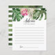 Modern tropical theme bridal / wedding shower advice cards featuring watercolor illustration of green monstera leaves, palm leaf, and pink king protea flower. Ask the guests to fill out this card during the shower. It will be a great keepsake!