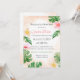 Tropical leaves and flowers watercolor bridal shower invitation. Festive and colourful for a summer brunch or luncheon.