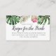 Modern tropical theme bridal / wedding shower insert card featuring watercolor illustration of green leaves including monstera, palm, and pink king protea flower. The card asks guests to fill out the recipe card and bring it to the shower. Send this card along the matching recipe card in my store!