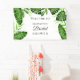 Tropical theme bridal shower with watercolor-illustrated palm leaves, monstera leaves, and other jungle botanicals personalised welcome banner sign. Designed and illustrated with love by Kristine Lee Designs.