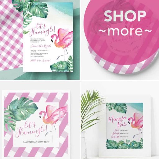 Keep your drinks cool in style with these charming can coolers, featuring tropical monstera palm leaves and a delightful pink gingham pattern. Perfect for a luau or backyard birthday party, these can coolers add a touch of tropical elegance to your celebration. Designed with unique watercolor art by Victoria Grigaliunas of Do Tell A Belle, they are both functional and beautifully crafted, making them an excellent addition to your party decor.