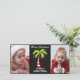Say Merry Christmas to all your friends and family with this traditional and cute photo Christmas card. It allows for two large photos on each ends of this card. In the middle is a black background . There's a tropical palm tree that has lights hanging from it. There's a red and white striped candy cane trunk on the tree. Personalise with your photos. Check out the many other designs and colours we have.©JW Illustrations