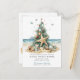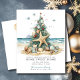 This festive tropical Christmas moving announcement card features a Christmas tree adorned with beach shells. The card is perfect for sending to friends and family during the holiday season to let them know about your new address while also incorporating your love of the tropics. The front of the card features the Christmas tree with beach shells and the saying "Holiday Greetings from our new home sweet home" The overall design is festive and unique, and the card is sure to put a smile on the faces of your loved ones.