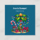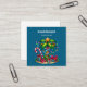 Square business card with a seasonal holiday image. A tropical palm tree decorated in festive lights with a star on top. A giant red and white candy cane sticking out of the sand. Christmas presents under the tree. Whimsical and fun.