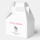 Tropical Beach Christmas party favour box, with a palm trees illustration and script typography. With customisable lettering, you add your own information. A festive addition to your holiday celebration.