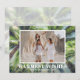 Share your favorite beach vacation or warm weather photo with this fun tropical palm trees Christmas holiday card with your greeting and names in chic white text. Select high definition for best print quality.
