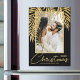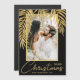 Glamourous faux gold glitter palm fronds highlight your favourite photo on these holiday black background magnetic Christmas photo cards. MORE designs in our collection.