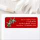 Tropical Christmas return address labels in dark red with printed white text. Add up to four address lines. Decorated with white starfish and green holly.