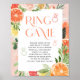 Bridal shower Ring Game poster. Print or download.This tropical citrus design features modern elegant fonts (easily change the colours!) and a bouquet of blush florals and tropical citrus fruit including lemon, lime, orange, grapefruit, and papaya! . See the entire collection for more matching items!