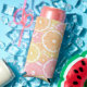 Seltzer Can Cooler with a tropical citrus fruit pattern in happy summer colours to brighten your day - Kate Eden Art.