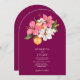 Announce your upcoming nuptials with this eye-catching arch-shaped wedding invitation. The striking design showcases a lively arrangement of pink flowers, delicate white blooms, and bright oranges, symbolising the sweetness of your love. Set against a rich plum backdrop, this invitation exudes a modern yet whimsical charm. The text is easily readable, allowing for clear presentation of your wedding date, time, and venue. This invitation is a beautiful choice for couples who want to add a splash of colour and personality to their wedding stationery.