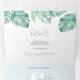 Tropical Coastal Tri-Fold Wedding Invitation. Introducing our new coastal tri-fold invitation in a stunning tropical design. The outside middle flap features your couple's photo, framed by my original hand-painted watercolor monstera palm leaf greenery. Your event details are beautifully presented in a trendy hand-lettered script typography paired with a traditional serif font.