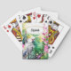 A tropical inspired, jungle backdrop filled with watercolor pink flowers and a majestic white cockatoo parrot. A scallop white edged with faux gold label appears at the top on which templates for your custom monogram, initials and name goes. These are ideal as stocking stuffers or as gifts for bridal tribes and card playing enthusiasts.