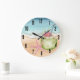 A cool watercolor beach theme with shades of pink and teal, setting the vibe for a beach escape. Cute pink starfish and and teal blue and tan beach wave accents, and a green coconut cocktail drink. It's all about those chill tropical beach vibes. Cute Starfish Coconut Cocktail Drink Beach Large Clock
