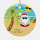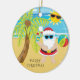Merry Christmas tropical christmas ornament featuring the cutest santa enjoying a cocktail on a beach with a palm tree. The perfect stocking stuffer! A Wonder Christmas gift sure to be treasured for many years to come.