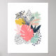 A fun and colourful tropical collage. Many handpainted elements are digitally edited to create this modern mix of spots, leaves and geo patterns.