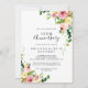 This tropical colourful autumn 50th wedding anniversary invitation is perfect for a modern event. The design features pink, blush, yellow, blue and white watercolor fall peonies with botanical green leaves.