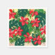 Tropical colourful jungle hibiscus red and green napkin