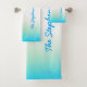 TROPICAL Cool Blue White Gradient with Blue Text Bath Towel Set