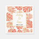 Tropical coral monstera palm leaves modern wedding napkin