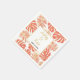 Tropical coral and gold leaves wedding paper napkin. The focus of this outstanding design is the leaves of Split Leaf Philodendron (Monstera deliciosa) or Swiss Cheese Plant and palm leaves in living coral with gold outline. A white frame with gold outline holds your text.