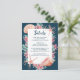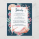 Nautical, "Under the Sea" theme wedding Details card features a colorful watercolor coral reef and seashells (starfish, conch and scallop shells) in shades of aqua blue, mint, coral, and pink on a deep navy blue background. Personalize with your wedding details such as hotel accommodations, wedding website, welcome reception, etc.). Coordinates with my "Tropical Reef" collection and is perfect for beach, ocean, nautical, coastal and destination wedding themes. Original artwork KL Stock