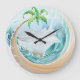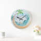 Dream of tropical waters with this full-colour illustration featuring a cruise ship moving through tropical ocean waves with a palm tree.