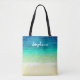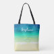 Create a custom personalised tote bag on tropical beach design with blue ocean and sand.