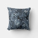 Tropical Dark Muted Blue Palm Leaves Cushion