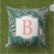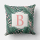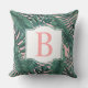 Tropical Dark Palm Leaf Blush Monogram Initial Cushion