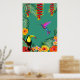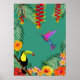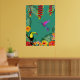 A vivid scene showcasing tropical flowers and plants. A toucan with its striking beak, perches gracefully among the foliage, while a hummingbird flits through the air with its iridescent wings. The artwork is burst with colour and is a reminder of our beautiful nature.