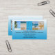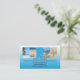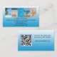 Business card featuring a range of tropical beach themed photos on a white and turquoise blue background. On the back is space for your own photo or a QR code. Great for a travel agent or travel blogger, and customisable for any other purpose.