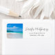 Address labels with a photograph of a gorgeous vacation location. Bright blue sky, soft sandy beach with tropical crystal clear blue waters. A lush tree covered mountain in the background. Scenic and tranquil photography.