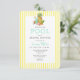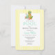 Preppy Tropical summer poolside Bridal shower invitation featuring watercolor pineapple and drink with yellow and white stripe background Perfect for some fun in the sun with your best gal in the celebration of the bride- to be.