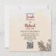 The companion card maintains the tropical theme with subtle floral elements while focusing on providing comprehensive event information. It includes the full names of the couple, their parents, venue address, and even a QR code for easy digital access to additional details. The colour scheme of cream, burgundy, and gold creates a cohesive and luxurious feel across both pieces.