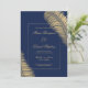 Classic elegant stylish tropical navy blue and gold sophisticated trendy palm tree foliage wedding invitations.This ampersand leaves design is perfect for a trendy and stylish party event. Customise this design with your own message and personalised information. All designs are printed.