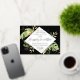 This elegant tropical themed wedding reception invitation features exotic foliage with gold accents on a black background. A modern geometric gold foil frame highlights the gold foil text. Gold foil splatters accentuate the botanical design and brings a bit of sophisticated whimsy to the invitation. "Happily Ever After" is featured in the middle of the invitation. This is the perfect wedding announcement and reception invitation for any tropical themed wedding.