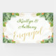 Elegant tropical Engagement Party banner featuring watercolor tropical palm foliage, flowers and botanicals with faux metallic gold palm fronds and a modern calligraphy script typography title ENGAGED with the couple's names. Ideal for a luau, beach or coastal themed celebration. ASSISTANCE: For help with design modification or personalisation, colour change or if you would like coordinating items, contact the designer BEFORE ORDERING via the Zazzle Chat MESSAGE tab below or email makeitaboutyoustore@gmail.com.