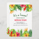 Lush tropical foliage and colourful flowers create the borders of this tropical invitation. Perfect for all Hawaiian-theme and summer celebrations. (<a href='http://www.freepik.com/free-vector/exotic-floral-background_874892.htm'>Designed by Freepik</a> ). <br/><br/>The card is easy to customise with your wording, font, font colour and choice of six paper types.<br/><br/>Not exactly what you're looking for? All our products can be custom designed to meet your needs at no extra charge.<br/><br/>Simply contact us at askcottonlamb@gmail.com<br/><br/>Coordinating products available:
