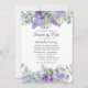 Trendy long distance bridal or baby shower by mail invitation featuring eucalyptus leaves and succulent plants mixed with florals in accents of pastel lilac , purple and violet.