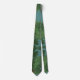 The artwork on this Neck Tie is an original photograph from nature. The photo of deep green tropical leaves and tree trunks, with a turquoise blue sky background, fans out across the tie, with an antique green tint over it, giving it a look of old silk fabric.