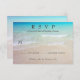 Tropical event reply card to enclose with invitation to a wedding, shower, or party. Beautiful blue ocean water and beach sand is the background for black, printed text. Include the type of event with reply date along the bottom.