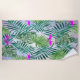Tropical Exotic ,Palm Leaves,Flamingos In Love Beach Towel
