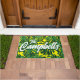 Tropical Family Name Green Yellow Palm Leaves Doormat