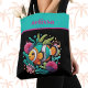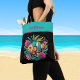 Tropical Faux Embroidery Fish Turquoise Pink Name Tote Bag