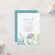 This tropical 3rd birthday party invitation features your child's name set in a stylish hand lettered script typography in turquoise blue with event details in a charcoal grey classic serif font on a crisp white background with a bottom boarder of my hand painted colourful watercolor tropical fish, starfish, sea coral and seaweed. The invite card reverses to a complimentary blue colour. A unique yet cute 3rd birthday party ideas for an Under The Sea or beach birthday party theme. To see this entire suite by Victoria Grigaliunas visit www.zazzle.com/dotellabelle